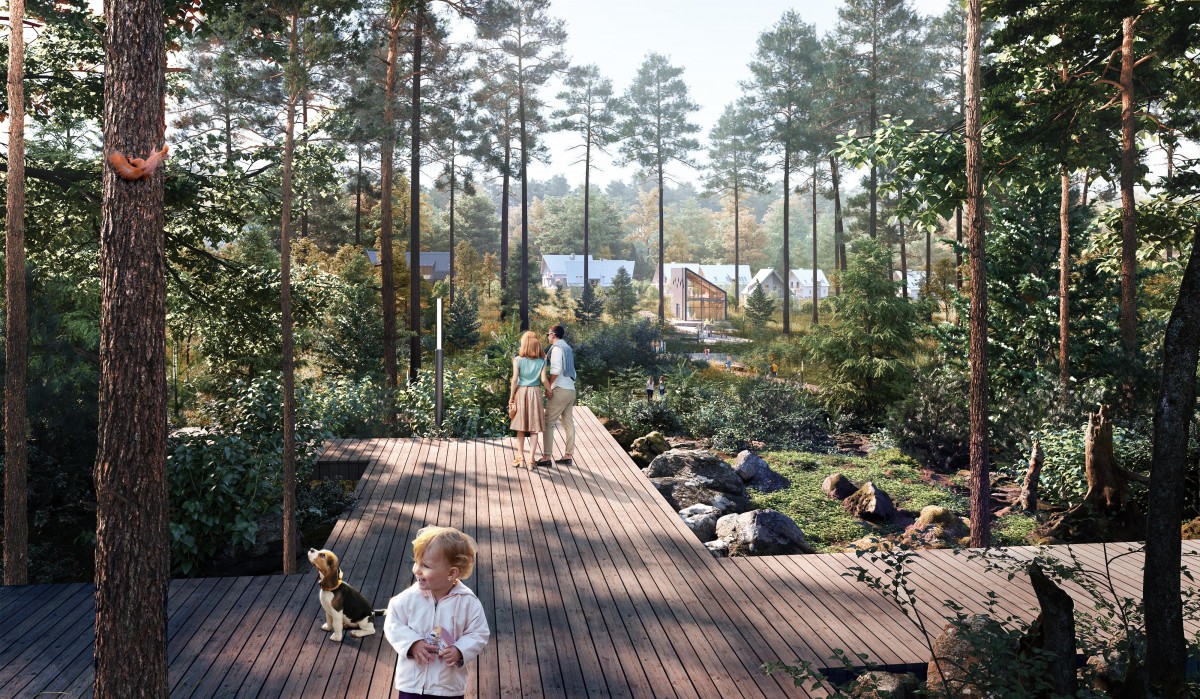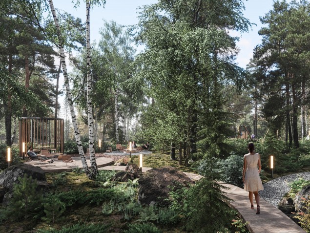 Негород Токсово спроектирован по принципам органической архитектуры. Плавные линии улиц следуют рельефу, создавая выразительное пространство — живое, а не нарезанное по линейке. Фасады формируют фронт улиц, а инженерные сети скрыты под землёй, чтобы ничего не нарушало визуальную тишину и цельность среды. Так рождается место, где взгляд отдыхает и всё кажется естественным. Здесь каждый элемент подчинён одной идее — архитектура не доминирует над природой, а становится её продолжением.
