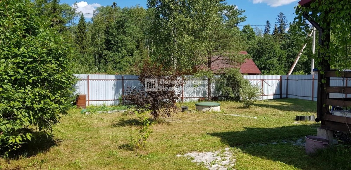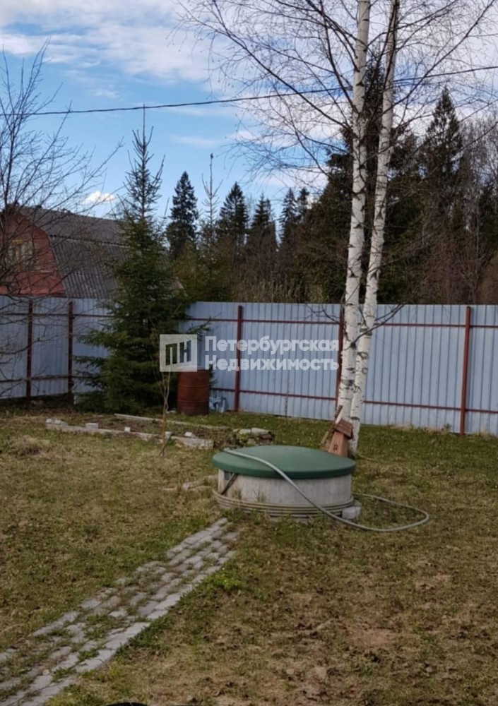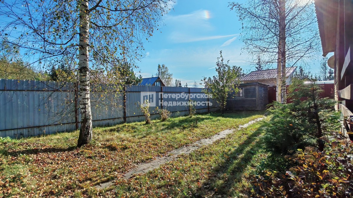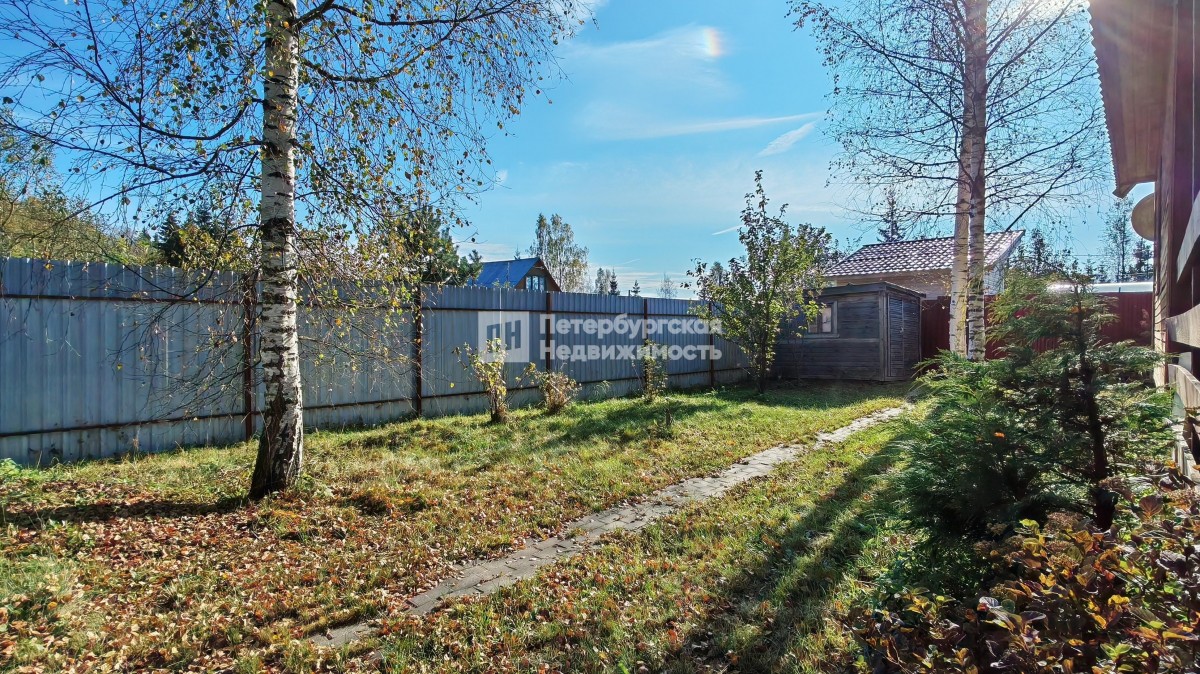 Земельный участок огорожен забором из профнастила, есть ворота для въезда машины. По всей территории участка положены дорожки и посажен газон. Есть деревья, несколько плодовоягодных кустов. Создана атмосфера спокойной уютной загородной жизни. Можно приезжать даже зимой.