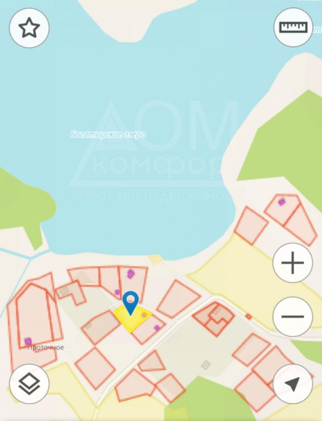 Участок расположен всего в 90 метрах от оз. Богатырское. На берегу оборудовано место для купания, возможен спуск лодки.