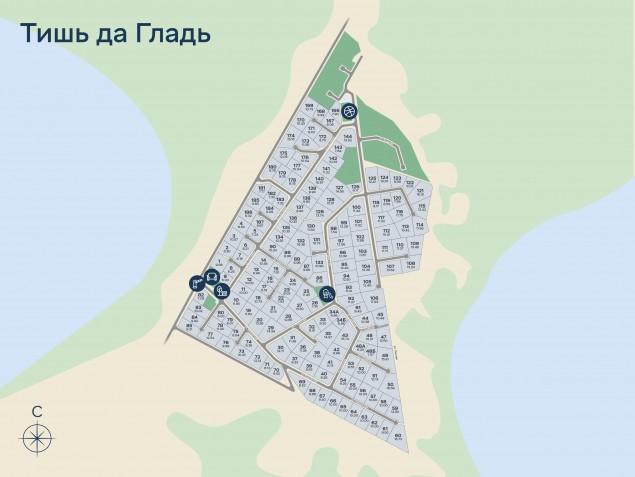 Участок в благоустроенном посёлке у двух озер и хвойного леса