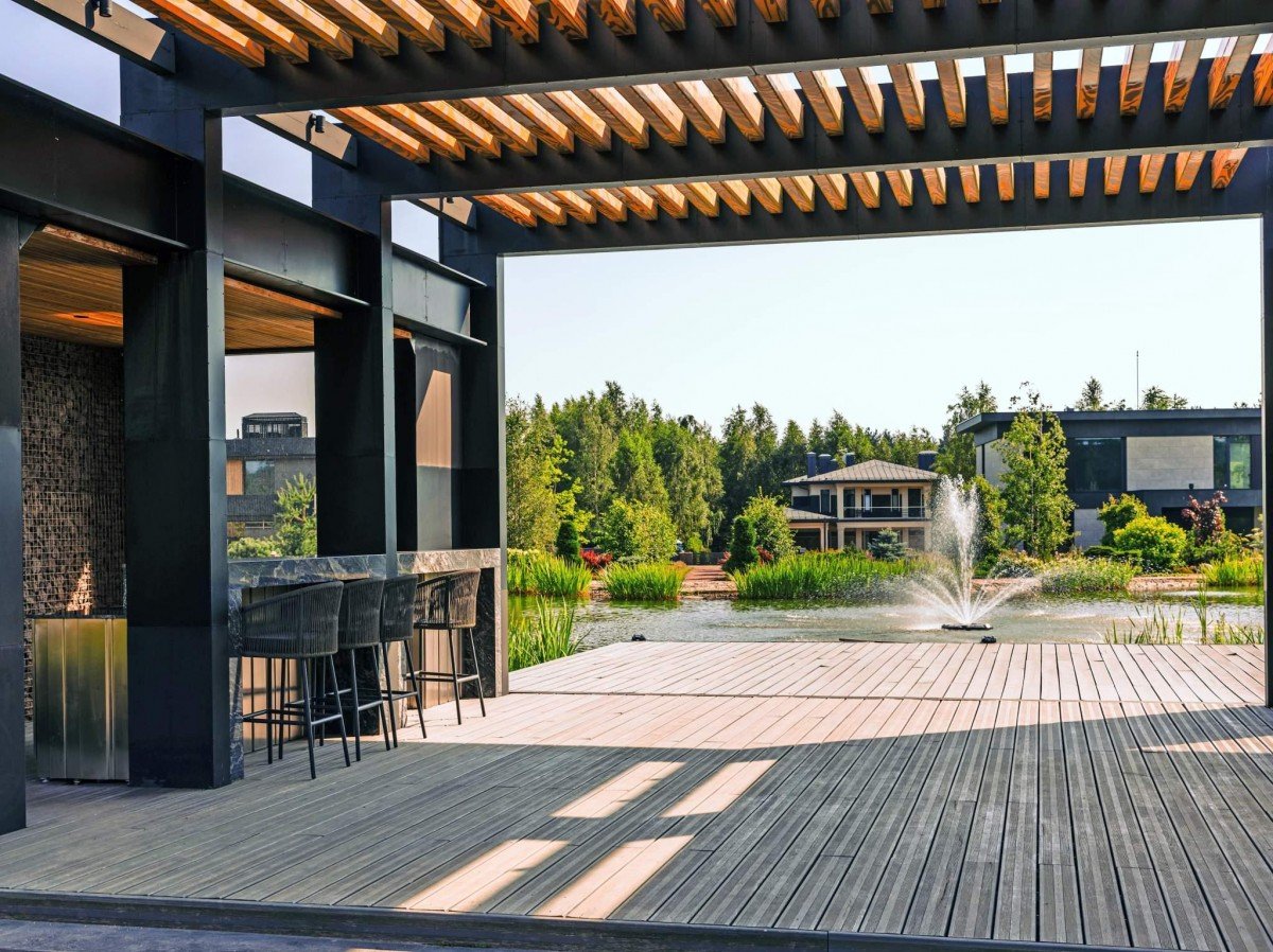 8. Лаундж-зона с террасой и баром на берегу озера