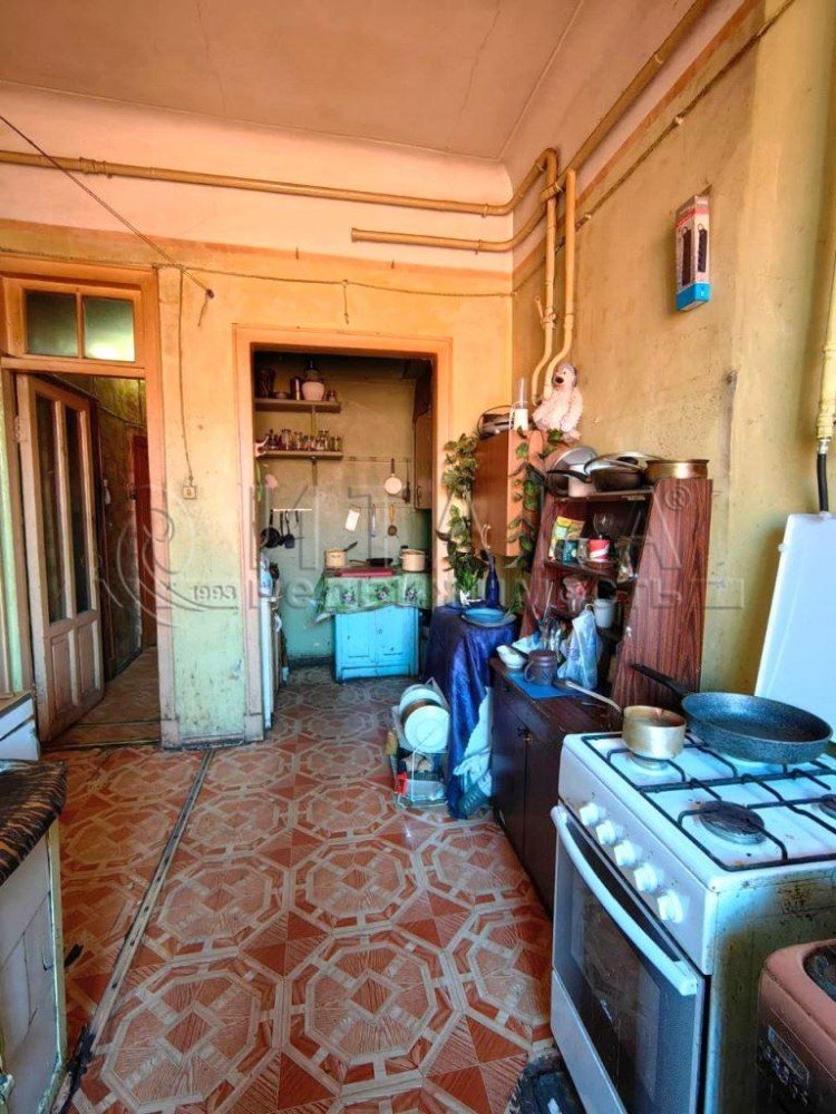 Просторная комната правильной формы, с эркером, размером с типовую однокомнатую квартиру. Вместительная кухня. Есть ванная. Парадная с лифтом.