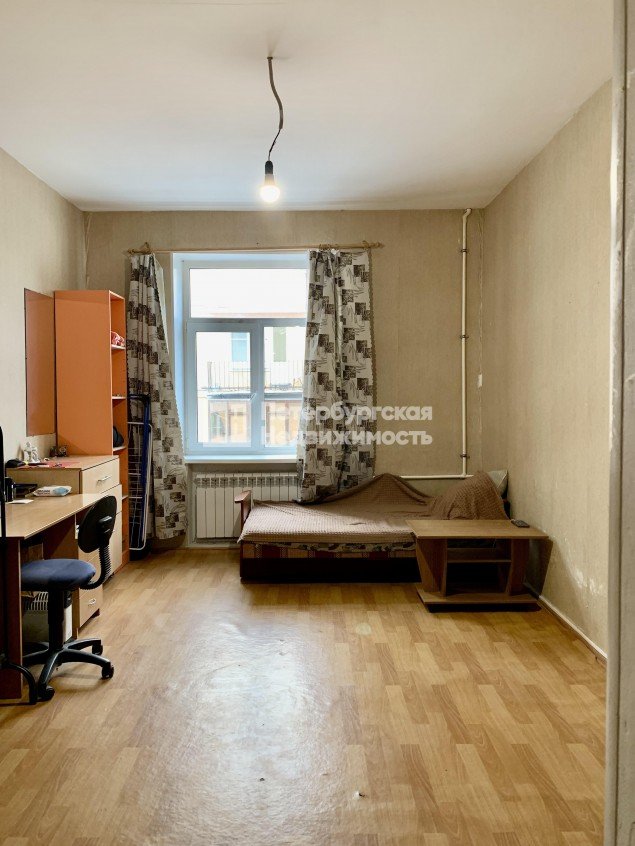 Номер объявления: 20544 - назовите его оператору. Просторная, светлая комната коммунальной квартире в кирпичном доме 1953 года постройки в стиле сталинского неоклассицизма.